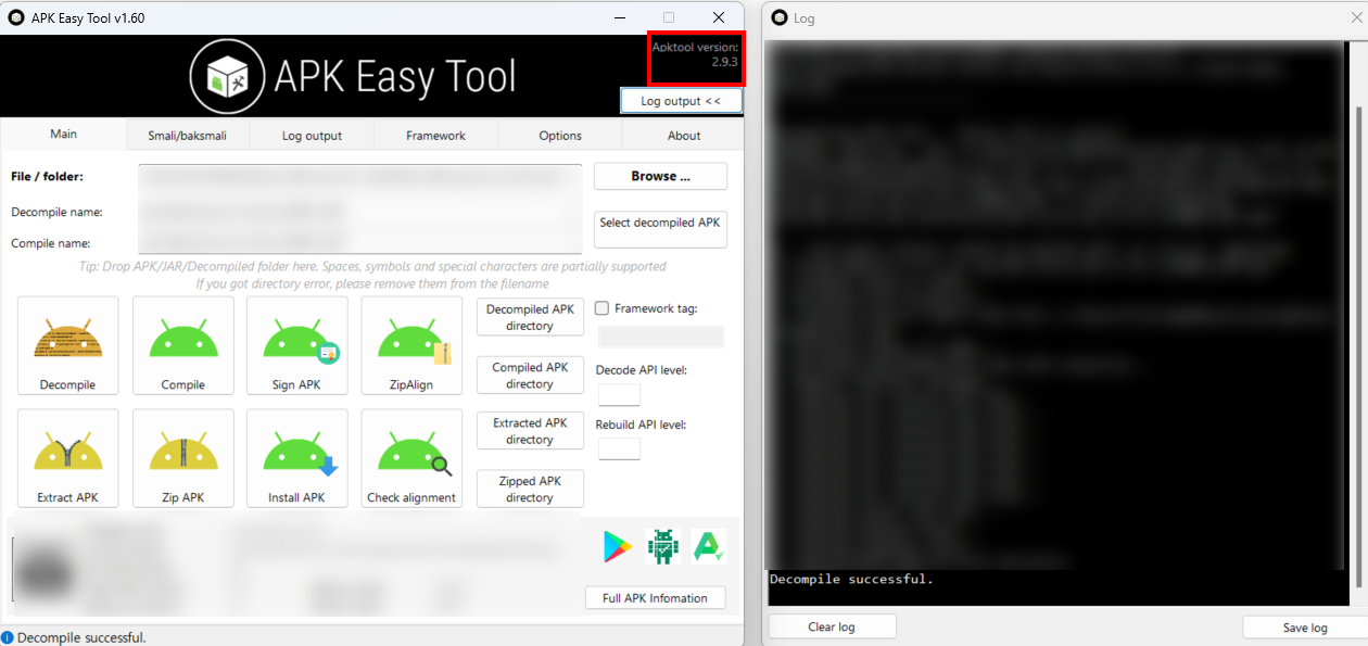 이후에 병합된 APK 파일을 apkeasytool을 사용하여 decompile및 recompile을 수행해보자.