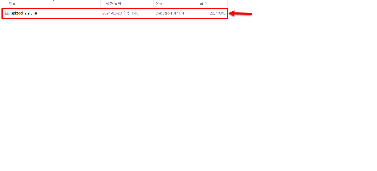 상기의 오류가 발생하기에 apkeasytool내부의 jar파일 버전을 수정해주었다.