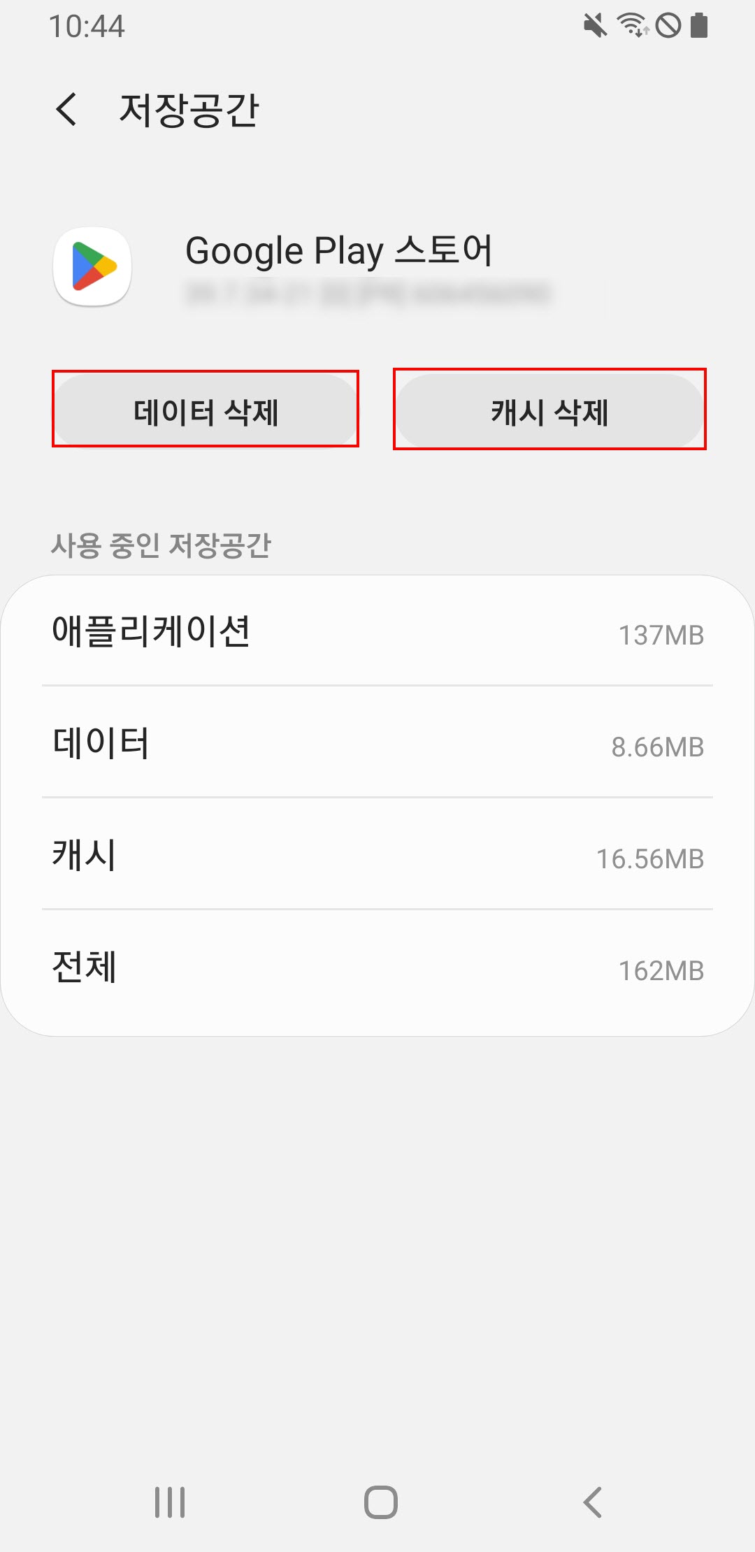 설정 > 애플리케이션 > google play store > 저장공간 (경로는 다를 수 있다.)